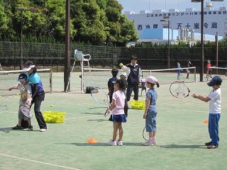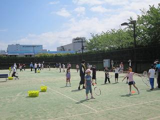 1.参 加 :小学生10名、中学生1名 2.コーチ :7名 3.内 容 :準備体操・ストロークの練習・ボレーの練習・ゲーム形式