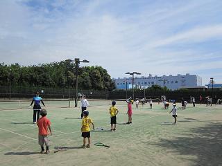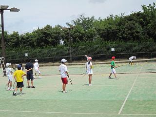 1.参 加 :小学生12名、中学生・一般13名 2.コーチ :7名 3.内 容 :準備体操・ストロークの練習・ボレーの練習・ゲーム形式