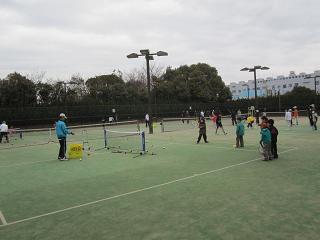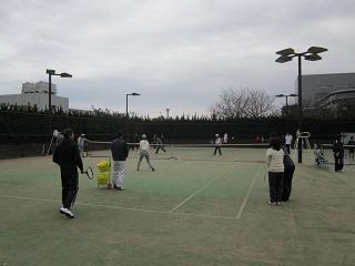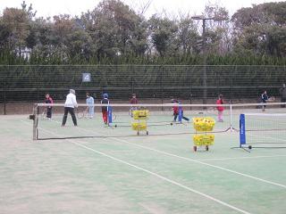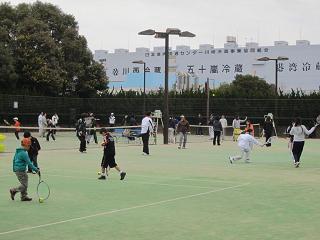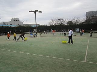 | 【開催日時】 平成24年2月26日(日) 9時~12時 【開催場所】 川崎マリエンテニスコート(3面使用) 1.参 加 :小学生23名、中学生5名、一般22名 |