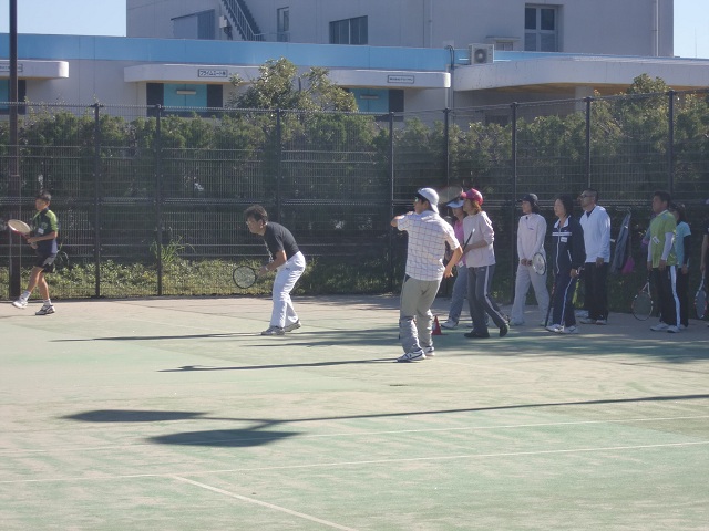 | 【開催日時】 平成24年11月3日(土)~11月25日(日) 9時~12時 【開催場所】 川崎マリエンテニスコート(3面使用) ◆参加 小1=2名、小2=8名、小3=4名、小4=6名、小5=5名、小6=1名、中2=2名、一般=19名 ◆スタッフ コーチ 5名 ◆内容 準備体操・ストロークの練習・ボレーの練習・ゲーム形式 |