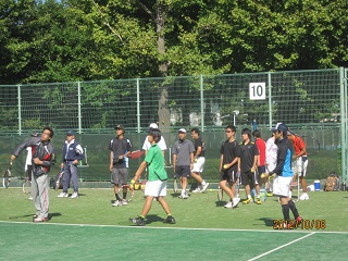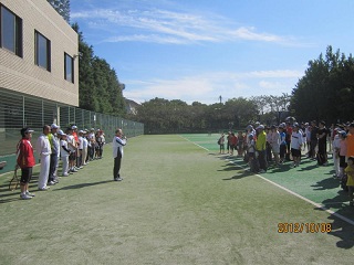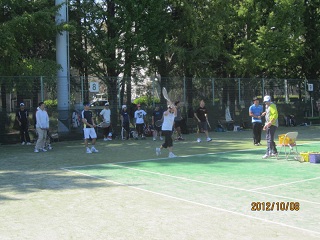 | 【開催日時】 平成24年10月8日(月・祝) 9時15分~15時30分 【開催場所】 等々力テニスコート ◆参加 小中学生男子=22名・女子=17名 高校生男子=2名・女子=0名、一般男子=51名・女子=28名 ◆スタッフ コーチ=16名 受付=4名 ◆内容 準備体操・ストロークの練習・ボレーの練習・ゲーム形式 体育の日にピッタリの晴天に恵まれ、たくさんのお子様や大人の皆様と楽しい1日を過ごしました。 |