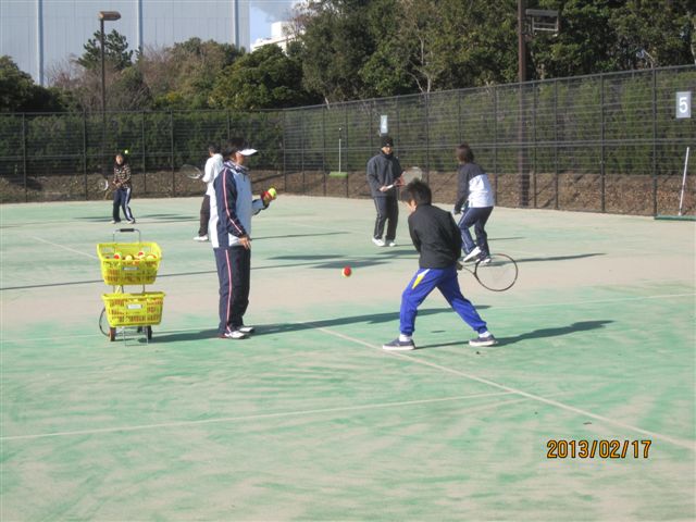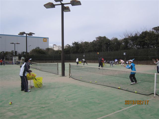 | 【開催日時】 平成25年2月17日(日) 9時~12時 【開催場所】 川崎マリエンテニスコート(3面使用) ◆参加 小1=1名、小2=6名、小3=2名、小4=9名、小5=0名、小6=1名、中2=2名、一般=12名 ◆スタッフ コーチ 4名 受付 1名 ◆内容 準備体操・ストロークの練習・ボレーの練習・ゲーム形式 朝からかなり冷え込み、肌寒い環境の中での体験教室でしたが、参加者の皆さんの元気なプレーで 寒さを吹き飛ばし、「まだやりた~い」の声が響く中、予定の3時間が過ぎてしまいました。 |