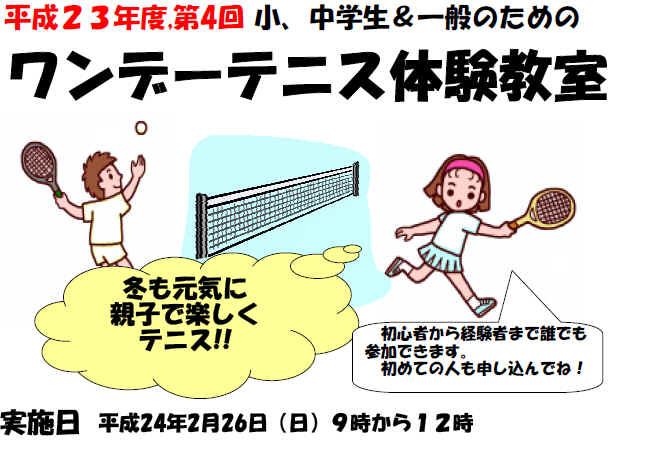 | ②.平成23年度、第3回小、中学生&一般のためのワンデーテニス体験教室開催案内 | |||