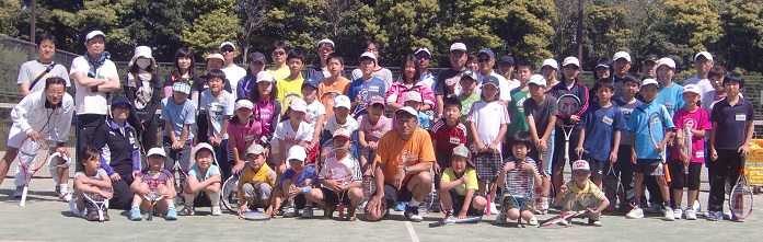 | 5月11日(日) | 小学生=31名、中学生=2名、一般=20名 テニス教室は親子で参加できますのでみなさんご参加して上達しましょう。やっぱりテニスは楽しい! |