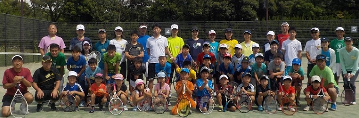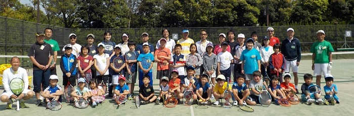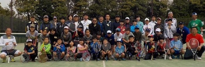 | 5月15日(日) | 小学生男子=19名、小学生女子=10名、中学生男子=1名、中学生女子=0名、一般=12名 五月晴れの好天の下、定員一杯の方にご参加頂きました。 テレビでは錦織選手の活躍が毎日放映され、ジュニアの皆さんには良い刺激になると思います。 錦織選手を目標に、これからも練習に励んでください。(コーチ一同) |