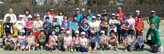 | 4月16日(日) | 小学生男子=20名、小学生女子=10名、中学生男子=0名、中学生女子=1名、一般=8名 29年度上期初回のテニス教室は、好天に恵まれました。 継続して参加されている方に加え、初めての参加者もあり、子供達のコートは大盛況でした。3時間の教室終盤になっても、まだやり足りない様に感じられる程でした。 次回の教室もたくさんのご参加をお待ちしております。(コーチ一同) |