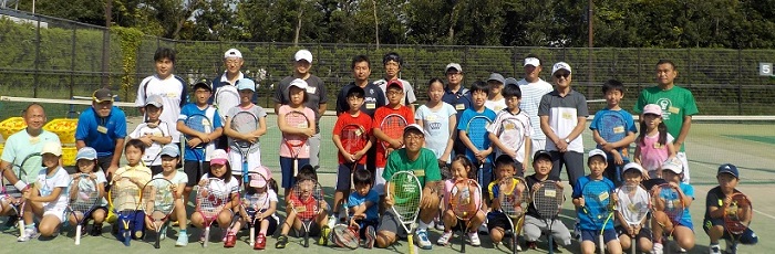 | 9月10日(日) | 小学生男子=15名、小学生女子=11名、中学生男子=0名、中学生女子=0名、一般=7名 8月は雨や曇りで涼しい日が多かったので、真夏の様な天気に逆戻りしてしまった今回のテニス教室は、さすがに皆さんもキツかったと思います。 休憩をいつもより多く取る様にして無事に上期最終日を終える事が出来ました。 これからはスポーツをするには最適な季節になります。夏の暑さで参加をためらっていた保護者の皆様も是非、来期からプレーしてみてはいかがでしょうか?(コーチ一同) |