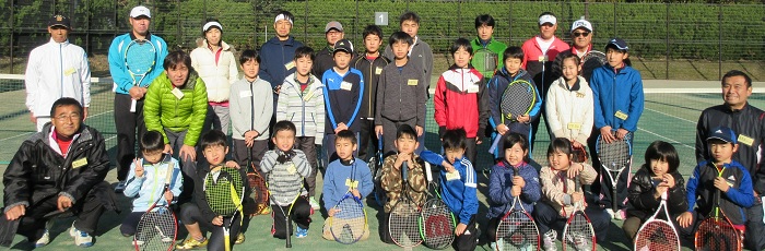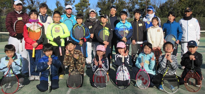 | 1月14日(日) | 小学生男子=11名、小学生女子=5名、中学生男子=0名、中学生女子=0名、一般=4名 今回は参加者が少なかったのですが、その分ボールを打つ機会が増えてどのクラスも充実したレッスンとなりました。 テニスを楽しむのが目的ですので、ぜひ付き添いの方もご参加してみてください!(コーチ一同) |