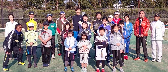 | 2月9日(日) | 小学生男子=7名,小学生女子=8名,中学生男子=3名,中学生女子=0名,一般=7名 テニス教室開催毎に継続者のお友達等で、嬉しいことに新規参加者が少しずつ増えています。 本日の教室スタート時は北風が吹き寒かったのですが、後半は気温も上がり風も治まったので汗ばむほどでした。 気温の上がり下がりで衣服の調整が難しく、風邪をひきやすい時期ですが、充分体調に気を付けて、次回教室も元気にご参加ください。お持ちしております。 (コーチ一同) | |