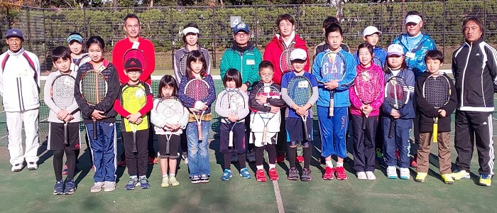 | 11月10日(日) | 小学生男子=11名,小学生女子=5名,中学生男子=5名,中学生女子=1名,一般=10名 ご継続での参加者に加え、新規の参加者も増え、トータル32名と久しぶりに定員オーバーのテニス教室となりました。 今後も安定して受講者が増えていくようであれば、定員枠を増やし、コーチも増員して受講者の方に楽しく、安全にご参加いただけるテニス教室にしていきたいと考えています。 次回12月8日の教室も、多くのご参加をお待ちしております。(コーチ一同) | |