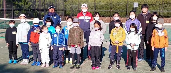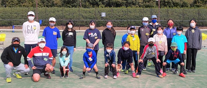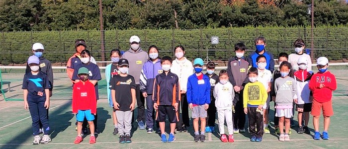 | 12月12日(日) | 小学生男子=6名、小学生女子=7名、中学生男子=1名、一般=10名 今年最後のテニス教室は師走にもかかわらず気温も高く好天に恵まれました。 緊急事態宣言発令により開催出来ない期間が長引き、解除後に参加者が集まるか心配でしたが、お陰様で新規の参加者もあり無事に最終日も終了することが 出来ましたこと、皆様に感謝申し上げます。 来年も参加者の皆様に楽しんで頂ける教室にしたいと思います、引き続きのご参加お待ちしております。(ジュニア委員会 片山) | |