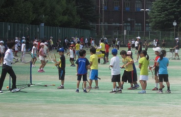 | 【開催日時・場所】平成27年9月23日(水・祝) 9時30分~15時00分 等々力テニスコート 【参加】 184名 (小1=21名、小2=20名、小3=17名、小4=20名、小5=13名、小6=4名、一般=89名) 【スタッフ】 コーチ=16名 受付=2名 テニス協会理事長・事務局長 【内容】 準備体操・ストロークの練習・ボレーの練習・ゲーム形式の練習・ゲーム 晴天に恵まれ、久しぶりの暑い日でしたが、たくさんの皆様がテニスを楽しんでいらっしゃいました。 |