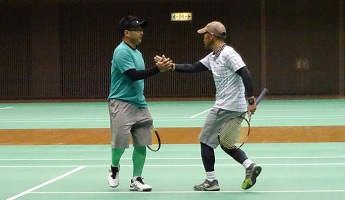 男子55才ダブルス 準優勝:藤井・和田 優勝:蓮沼・岸田![]() |